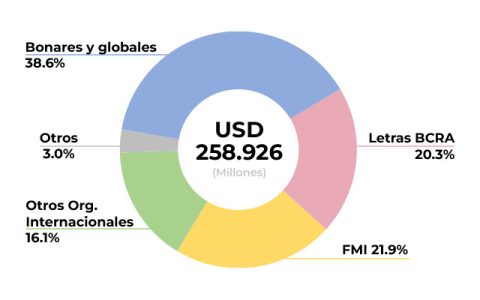 El 39% de la deuda pagadera en moneda extranjera corresponde a préstamos de esas instituciones internacionales.