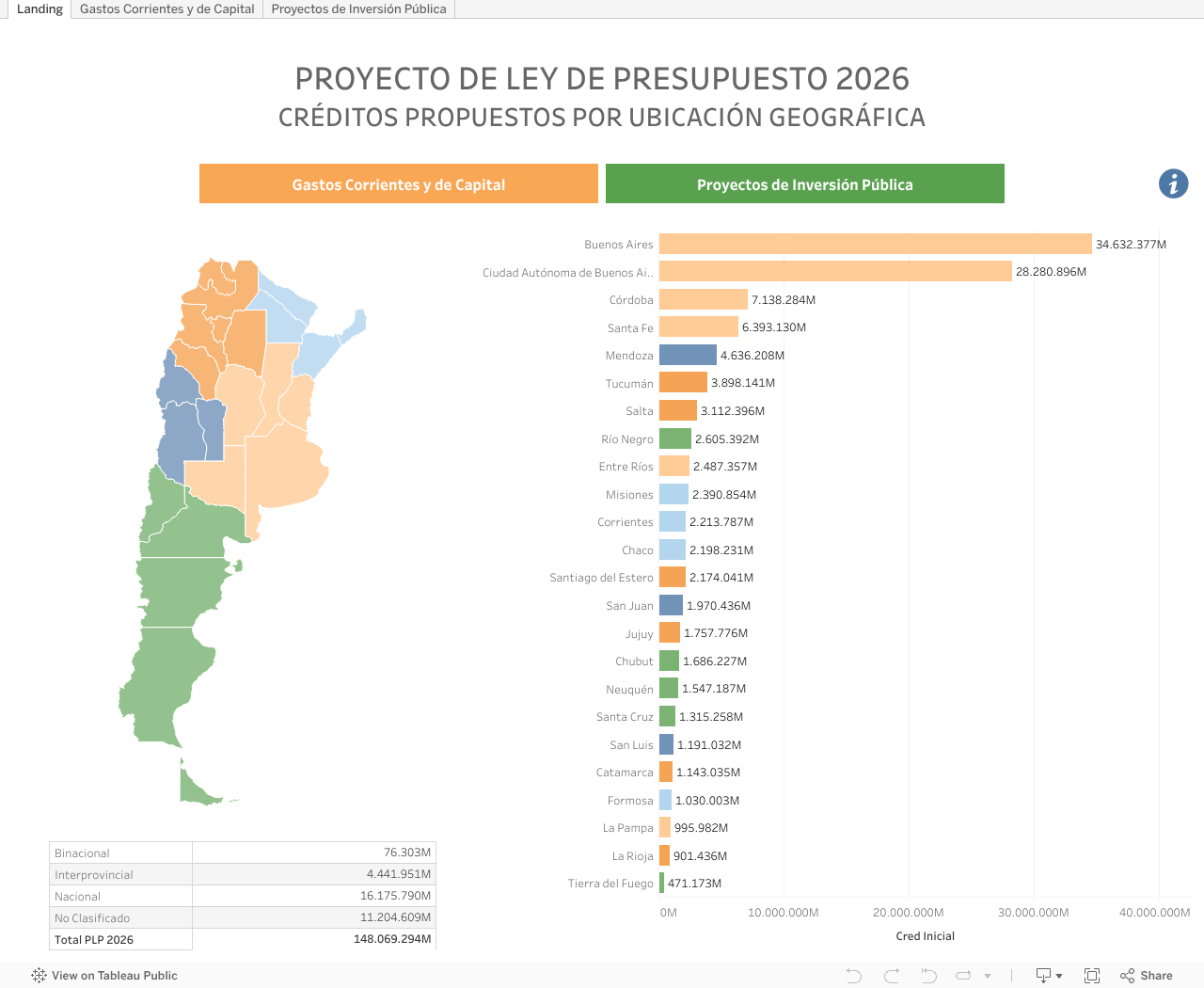 El monitor presenta los créditos propuestos en el Proyecto de Ley de Presupuesto por ubicación Geográfica, es decir, todos los gastos que la Nación estima realizar en una provincia determinada. No incluye gastos figurativos ni aplicaciones financieras